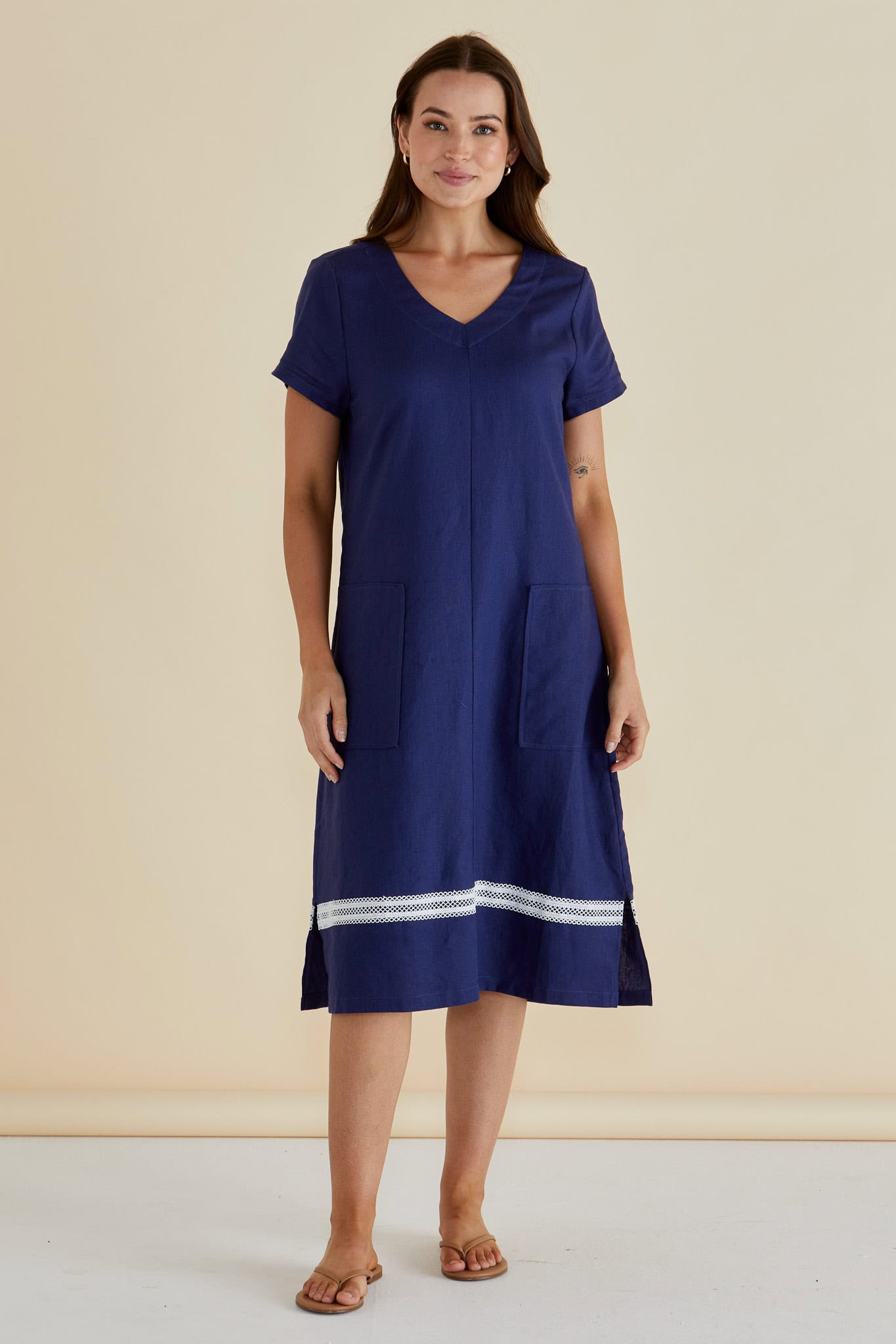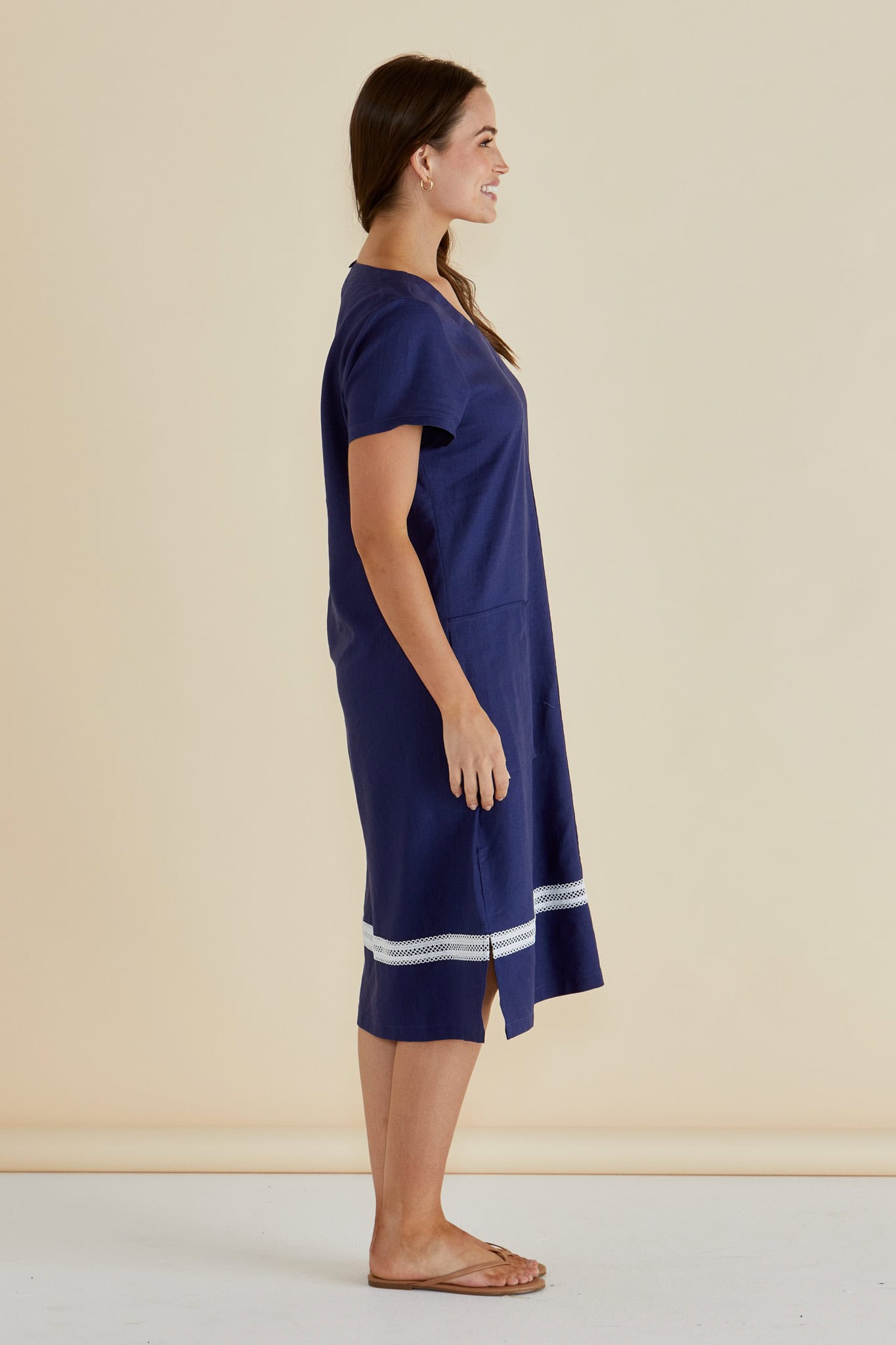 The Elwood Dress blends breathable viscose/linen fabric with a relaxed, oversized fit for ultimate comfort. Its V-neckline and side splits add a refined, elevated edge to this classic silhouette. Pockets enhance its practicality, making it an easy, transeasonal dress that effortlessly transitions through the seasons.