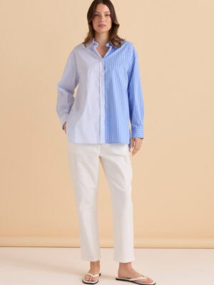 Our stylish basic reimagined in the seasonal colours and prints. Features elbow length sleeves, rib cuffs, and a ribbed hem. The front hem rests at waist length, while the back hem is rounded and falls below the hips, creating a chic and flattering look.