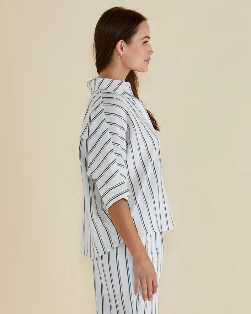 Betty Basics | Lynwood Linen Shirt – Black/White Stripe