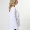 Slub jersey knit v neck with long sleeves, curved hi-lo hemline and rib hem trim. Side logo pip